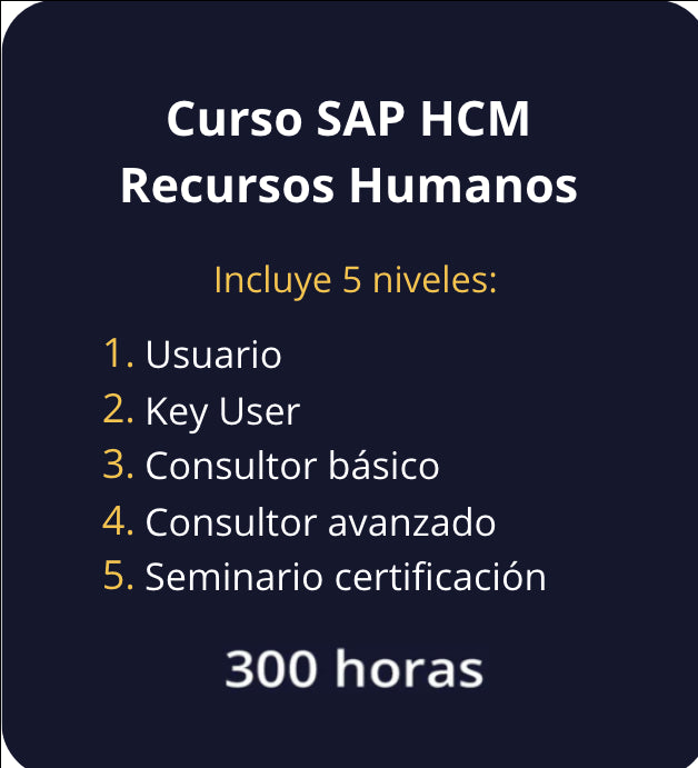 En este curso aprenderás las competencias necesarias para trabajar como Consultor SAP en el módulo HCM – Recursos Humanos, y obtener la certificación oficial asociada.